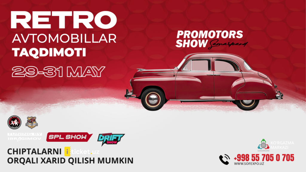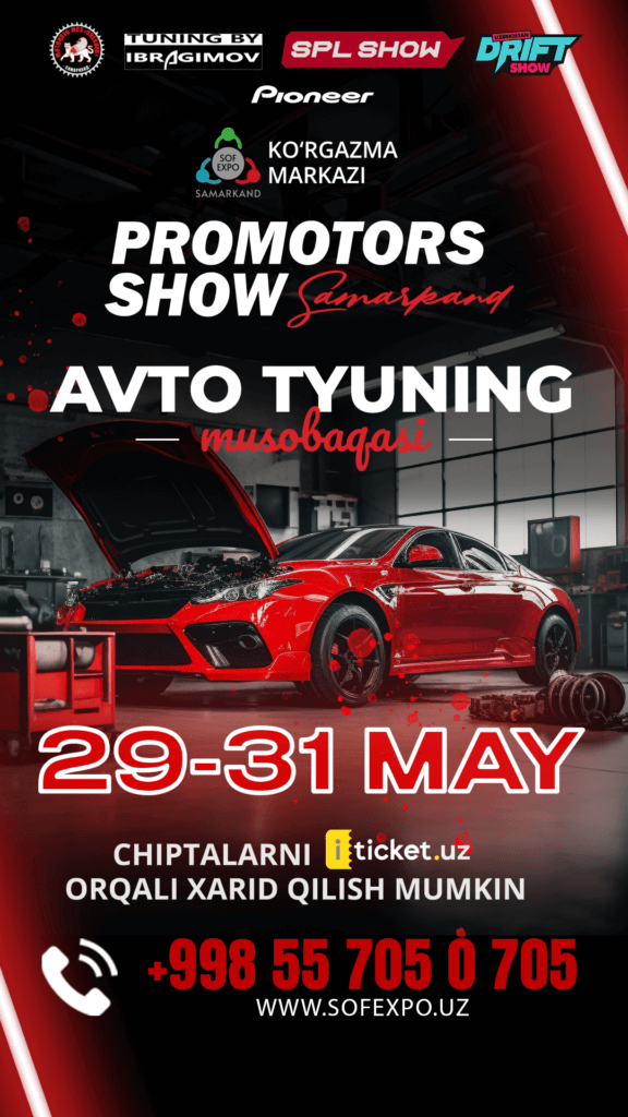 С 29 — 31 мая 2026 года в «SOF EXPO Samarkand» состоится Международная выставка-фестиваль «PROMOTORS SHOW SAMARKAND 2026» — мероприятие для специалистов автомобильной отрасли и всех, кто интересуется автоиндустрией.